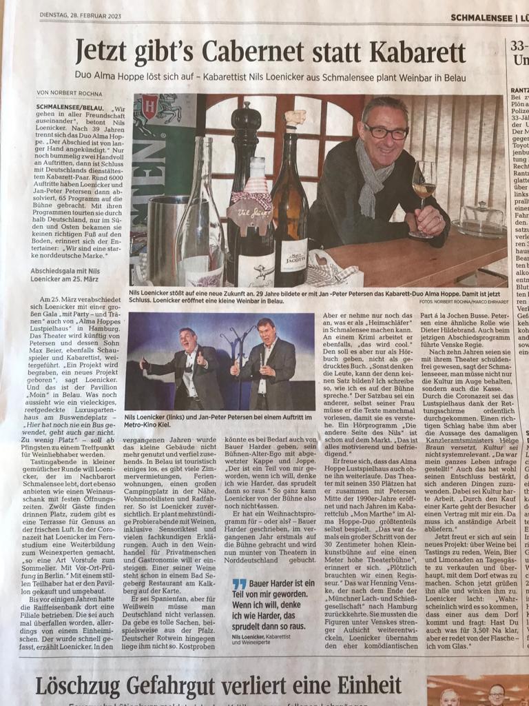 28.02.2023 Hamburger Abendblatt Jetzt gibt`s Cabernet statt Kabarett JPEG